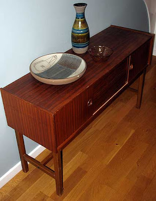 Bord och stolar från femtiotalet, jag har klätt om dynorna.
